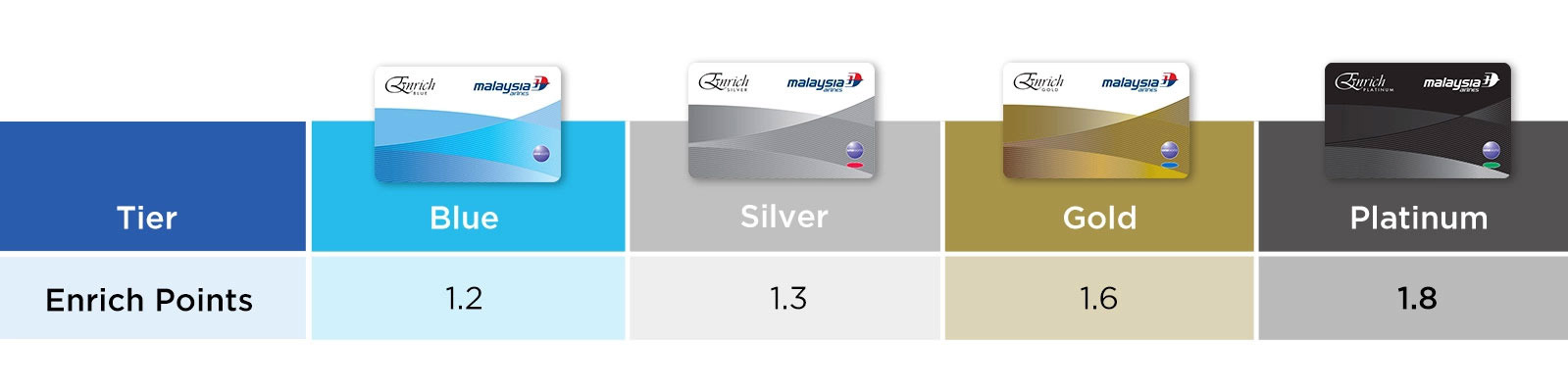 Your Enrich Points earned will be based on your tier and amount spent on the ticket (base fare and carrier-related charges). For example, if you are Blue member and you spend RM100, you will earn 120 Enrich Points.