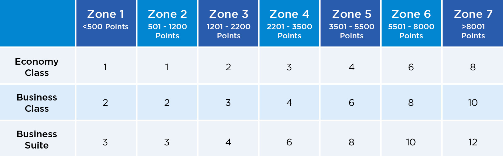 Your Elite Points earned will be based on your travel destination that falls into the respective Zones and cabin class of travel. For example, if you are a Silver member and you travel to Singapore (Zone 1 - <500 points) on Economy class, you will earn 1 Tier Elite Point.