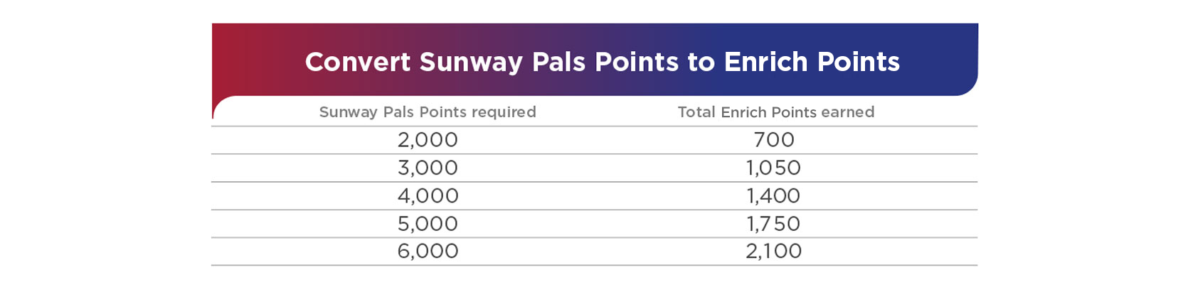 Convert your Sunway Pal Points to earn more Enrich Points today.