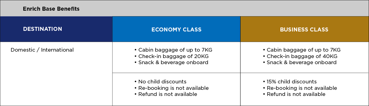 - Enrich Base Redemption is valid for round-trip only. Enrich Points indicated above is for one-way flights between two destinations.